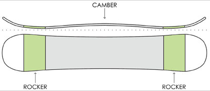 La forma Camber + Rocker sulle punte serve a dare entrambi le sensazioni, camber tradizionale quando andiamo a cercare una lamina effettiva più lunga ma nello stesso tempo avrà più capacità di galleggiamento in neve fresca. Questo profilo è molto popolare nelle tavole da freeride progettate principalmente per la neve fresca.