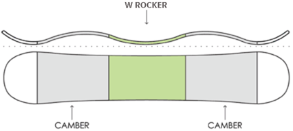 Il profilo W-Rocker è un profilo specifico per le tavole da snowboard,  funziona molto bene perché il peso del rider appiattisce le due aree bombate. Questo design produce una zona centrale molto forte, e riesce ad ottenere una bella presa di spigolo quando è sotto pressione durante il carving, inoltre mantiene un pop molto preciso e potente su punta e coda.