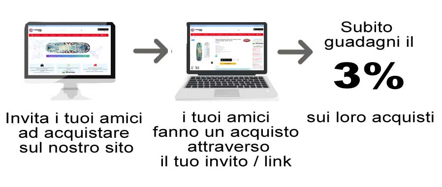 Se il tuo link fà vendere un prodotto da 100€ riceverai subito € 3 nel tuo account.